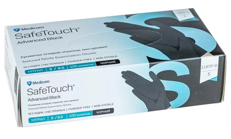 Рукавички нітрілові (чорні) SafeTouch Advanced Black MEDICOM 3,5 г 100шт S